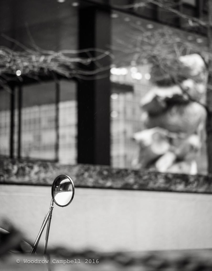 Looking back exactly ten years to the Seagrams Building. For a period a decade or so ago there were changing sculpture installations on the plaza in front of the Seagrams Building. Ten years ago there was a pile up of Harleys. This is one of their mirrors. Day 2,311 of one photograph every day for the rest of my life.