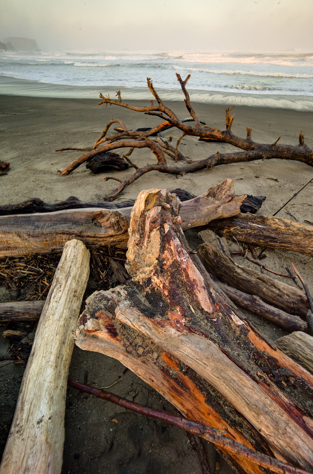 BANDON BEACH, OREGON – I’m in Oregon to take part in a workshop sponsored by Jack Flesher and Guy Mancuso of GetDPI.com. The overt purpose is to photograph the Oregon coast using Bandon and Gold Beach as bases. The real purpose is to catch up with good friends and eat and drink too much. The Oregon coast really is rugged, foggy and generally wet. This is low tide at Bandon Beach.