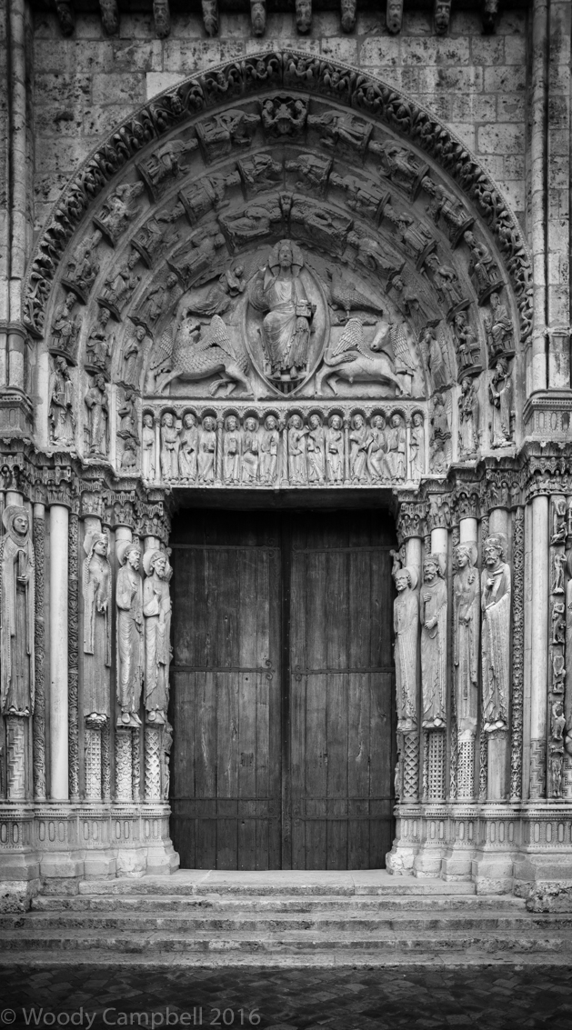 We drove on toward our final destination (Brittany), making a stop at Chartre. Maria had seen the famous cathedral (started in 1150 or so) 30 years ago. I had seen it only in books. It’s a magnificent structure, light and airy, and at the same time massive. It wears its age – almost a thousand years – it’s constructed of limestone and a millennium of weather has softened the details on the thousands of sculptures on the exterior. We only had a couple of hours so I’m not able to do it justice. The image here is a six frame stitch of the Royal Portal.