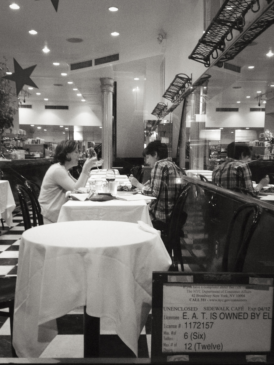 What to do? Here I am on Madison Avenue at 10:30 with no picture for the day. Wait. My iPhone. It only has 10% charge left but that’s enough. I got one image through the window of EAT. That’s it, my image for the day.