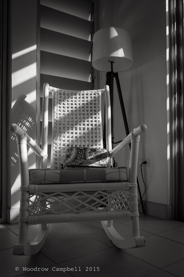 I struggle as a photographer in the tropics. Another shot of a palm tree, anyone? How about some nice frothy surf? Anyway, today’s image is a rocking chair.