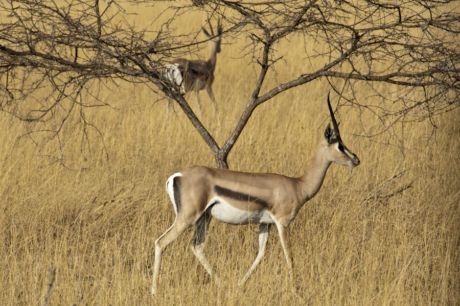 CHYULU HILLS, KENYA – Most of the images in the trip are taken with a Nikon D700 and various combinations of long lenses. There is a 15 kilogram baggage weight limit on chartered bush plains, so my photo gear severely limited luxury items like clothing and toiletries. Our typical day started with coffee in camp before sunrise (6:30) followed by a game drive in a Land Rover to catch the activity around sunrise, then breakfast in the bush. Game was not particularly plentiful in this region as it has suffered three years of drought. Impalas from our morning game drive: