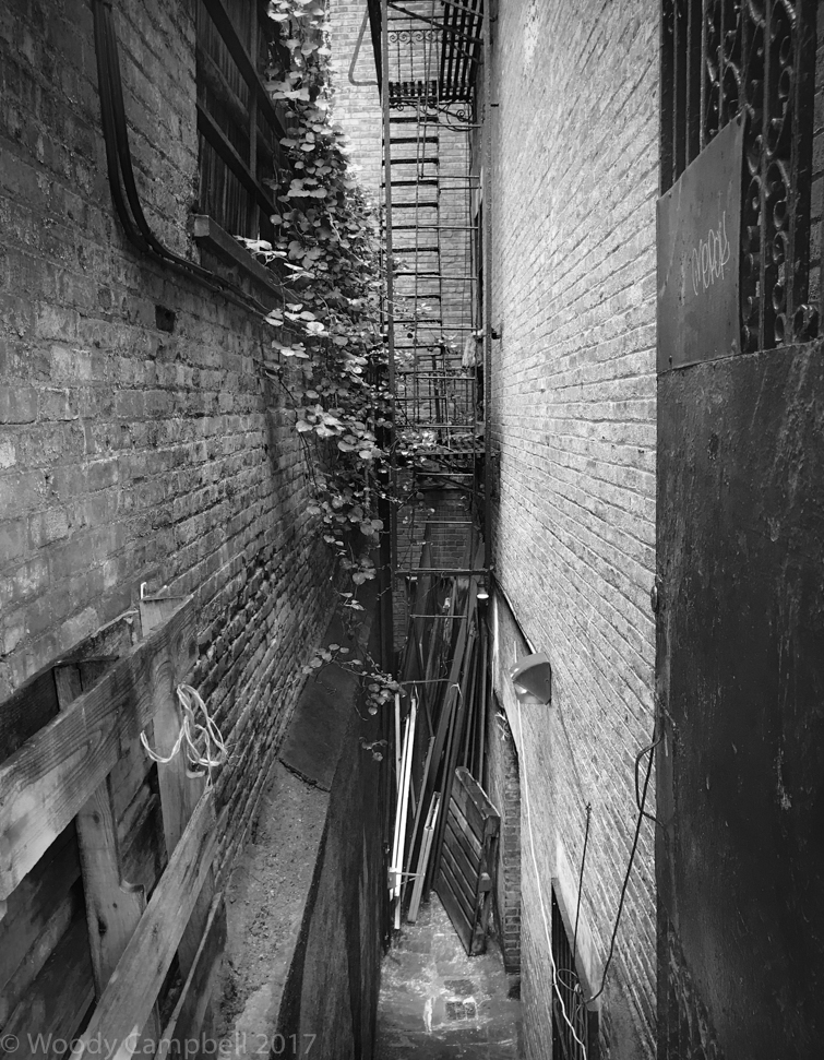 NEW YORK NEW YORK – I shot creases between buildings today with my iPhone. The backsides of of buildings. The first is my favorite: it illustrates the resiliency of plant life here.