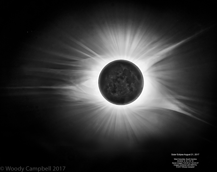 In August 2017 we traveled to South Carolina to photograph an eclipse with a 3″ Astro-Physics refracting telescope, a heavy equatorial mount and serious cameras. This is what we captured – the final image is built up from 10 exposure-bracketed images. Day 2863 of one photograph every day for the rest of my life.