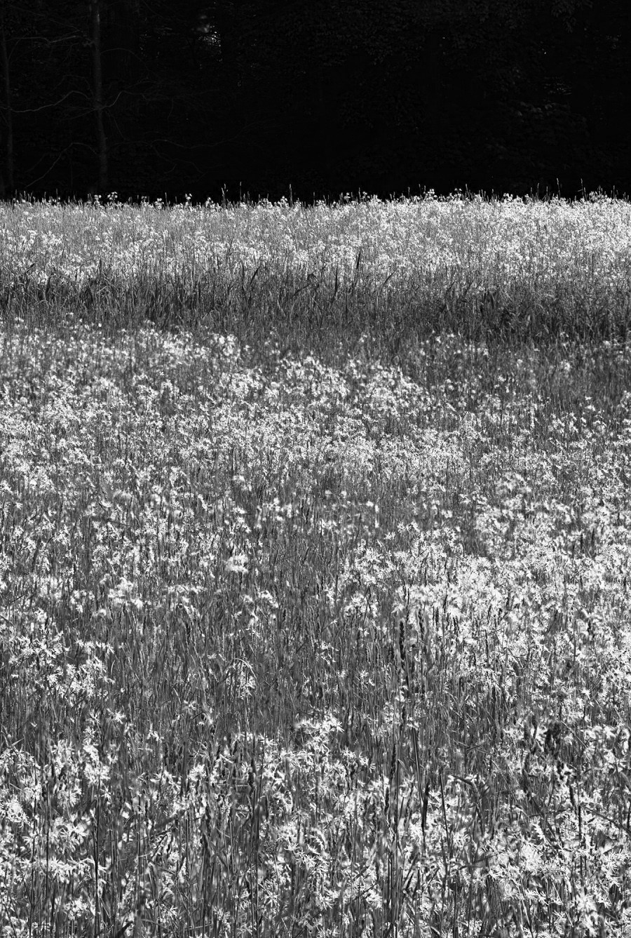 On this day five years ago (day 591): Field photographed with a digital Hasselblad. It was made from nine separate images that were focus stacked. I subsequently gave up medium format in favor of my Leica Monochrom because the Monochrom makes black and white images at least as good as medium format (although I haven’t compared it to the current crop of 100 meg cameras), and I prefer the Leica’s rangefinder viewing and its form factor. The original was in color and drab (wildflowers are a bit subtle sometimes); the conversion to black and white below is more successful.