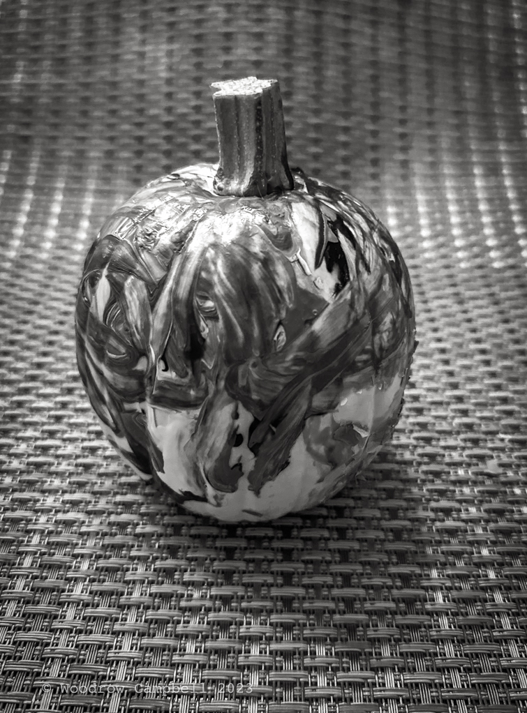 SYRACUSE NEW YORK – -We’re here for a week celebrating Thanksgiving with our daughter and grandchildren. Today I’m showing more art: in this case a pumpkin painted by Gigi, our four-year-old granddaughter.