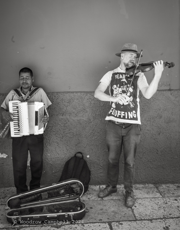 OAXACA MEXICO – Street musicians. The accordion player is blind. The violinist seems to have taken hiim under his care.