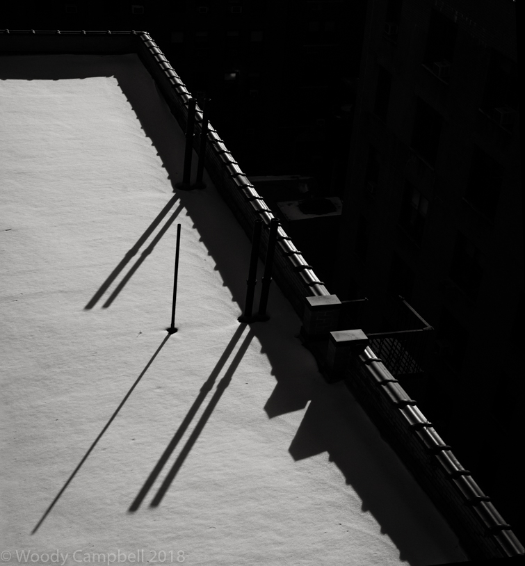 NEW YORK NEW YORK – A rooftop with snow today. Two frames stitched.