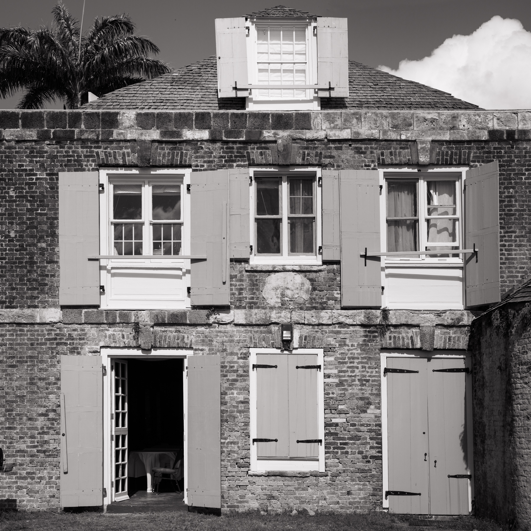 ANTIGUA – I took a walk on the beach with my Leica Monochrom and 50mm lens. The actual picture that presented itself was a very large cloud that demanded very wide angle, so I shot 12 overlapping frames and stitched them together. It actually worked. I shot very, very quickly because my experience suggests that the movement of the surf from shot to shot can make it very hard to stitch. Here it is. This is a very high resolution file that could be printed to billboard size.