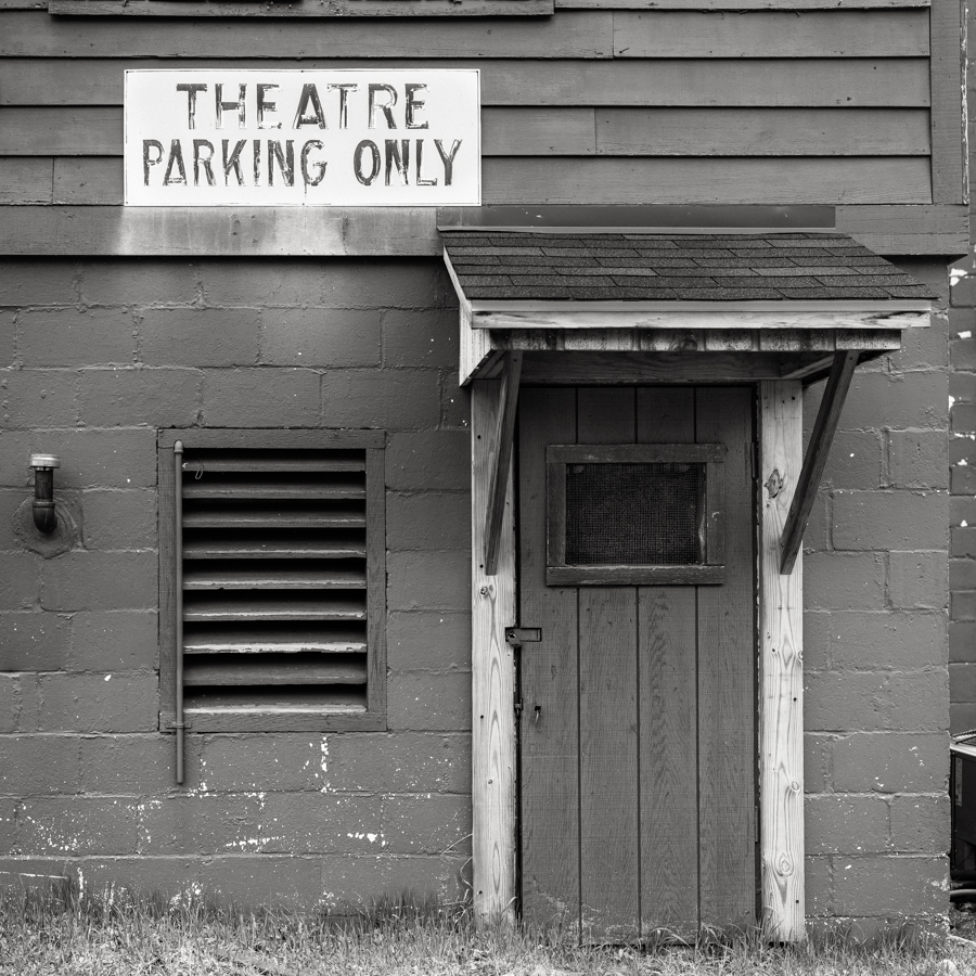 BANTAM CONNECTICUT – This is a muddy, cloudy day with a flat sky and little going on visually. I finally photographed a door on the movie theater in this tiny town.