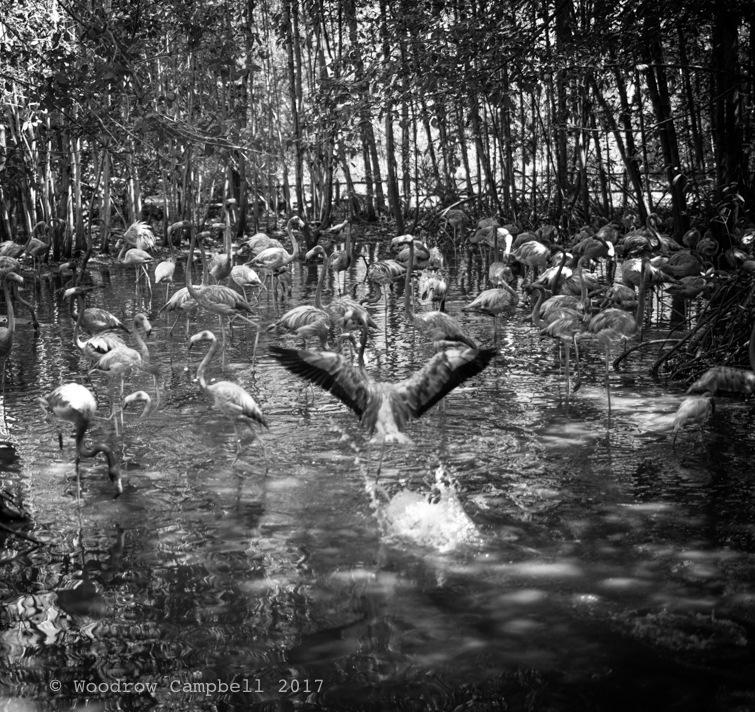 Baru Island, Colombia – We visited a bird sanctuary here today. Flamingos in black and white.