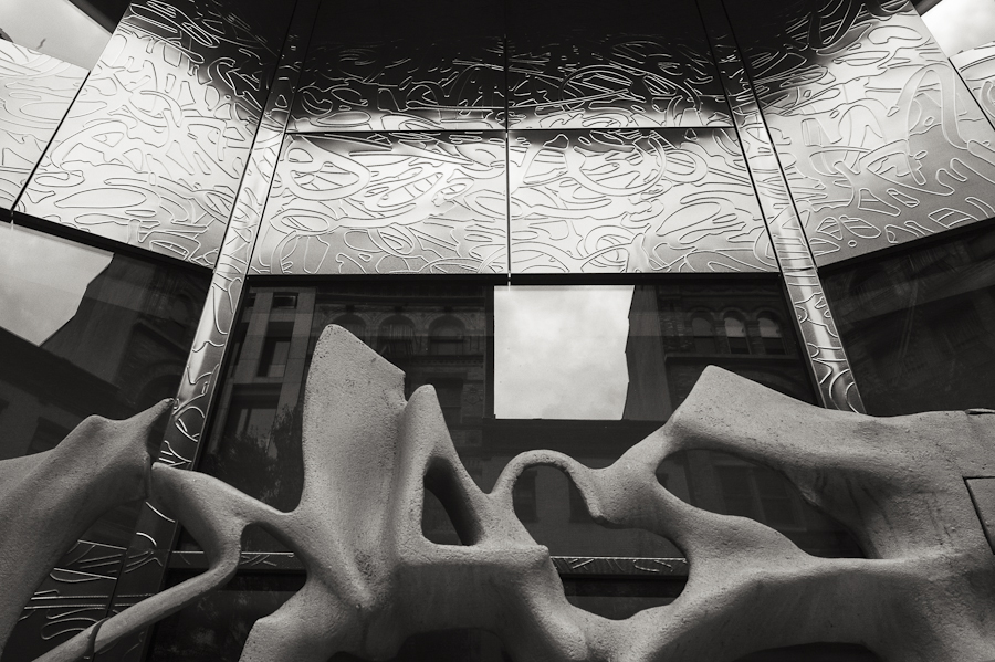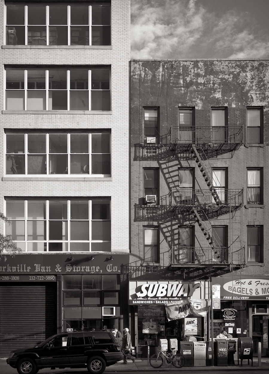 NEW YORK NEW YORK – Two views of the Lower East Side: a look up at the slick facade of the New Museum, and a full frontal portrait after Weston of a disused synagogue. Both taken with my Leica Monochrom and 35mm Summicron Lens; the New Museum is a single frame; the synagogue is eight frames stitched.