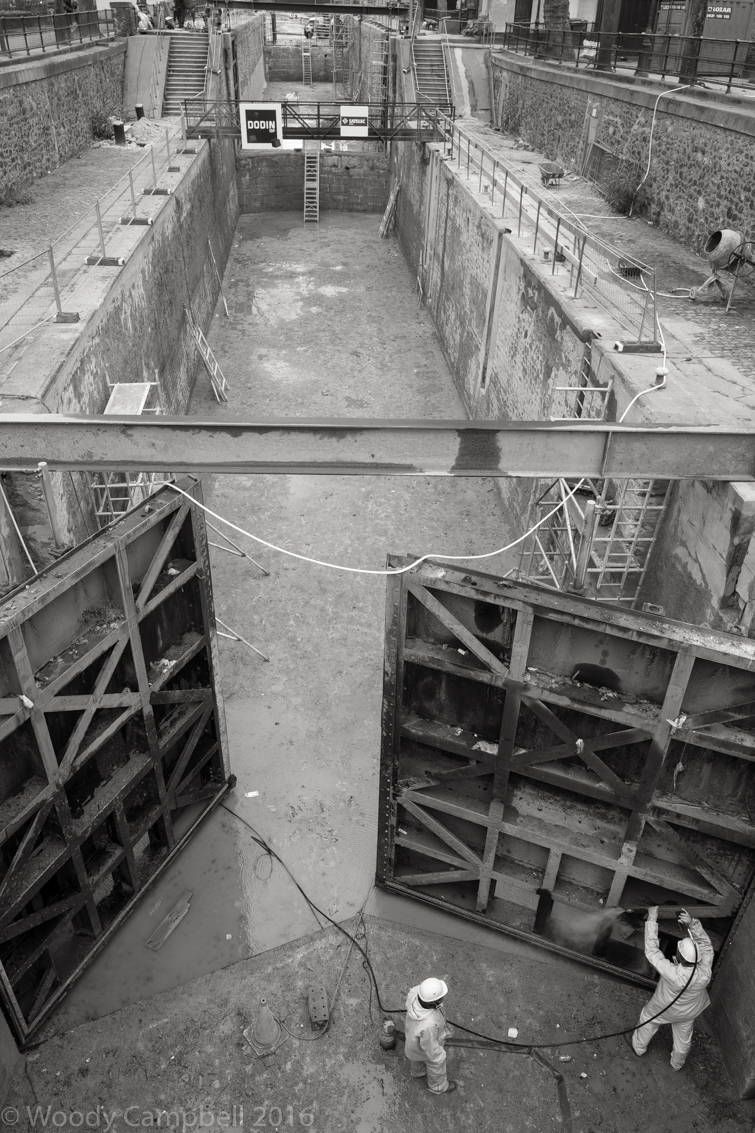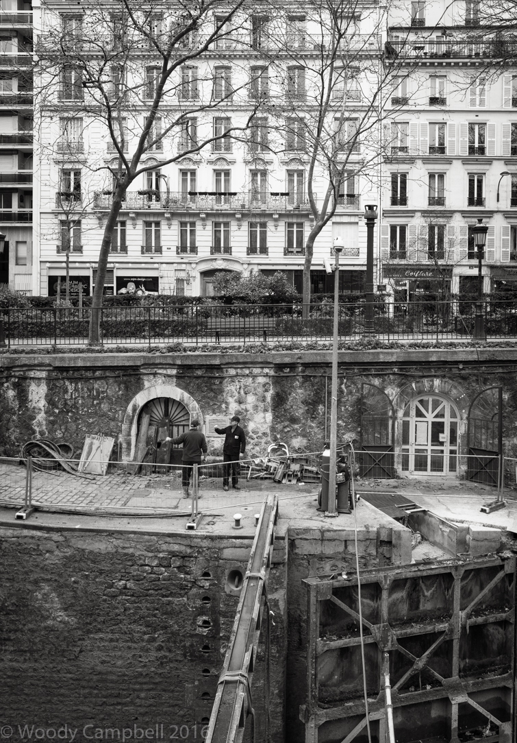 PARIS – Another day here, this time along the Canal St. Martin, which conveniently or inconveniently, depending on your point of view, has been drained for cleaning and repairs. All images shot with my little Leica Q.