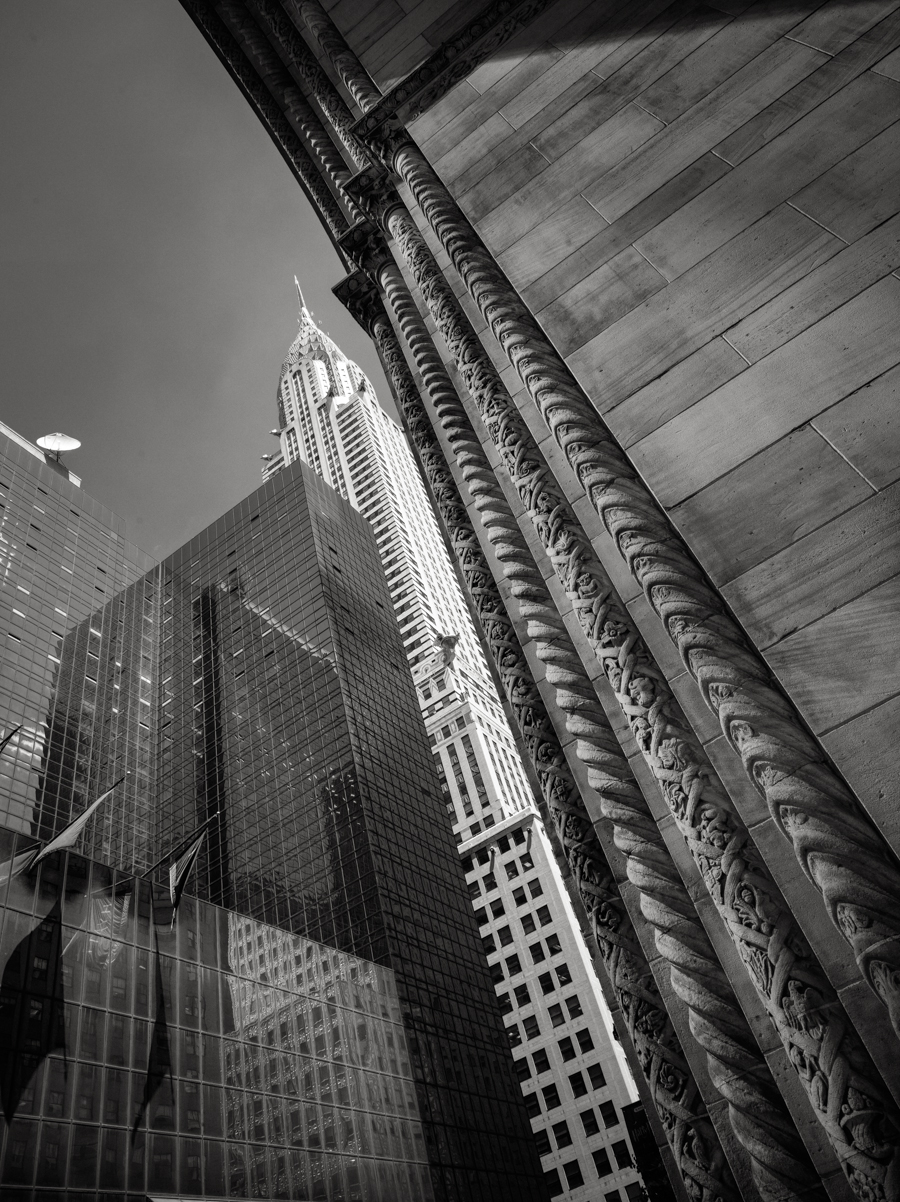 On this day three years ago (day 599): Chrysler again. Originally shot and posted in color. I recently reprocessed it as black and white which I prefer.