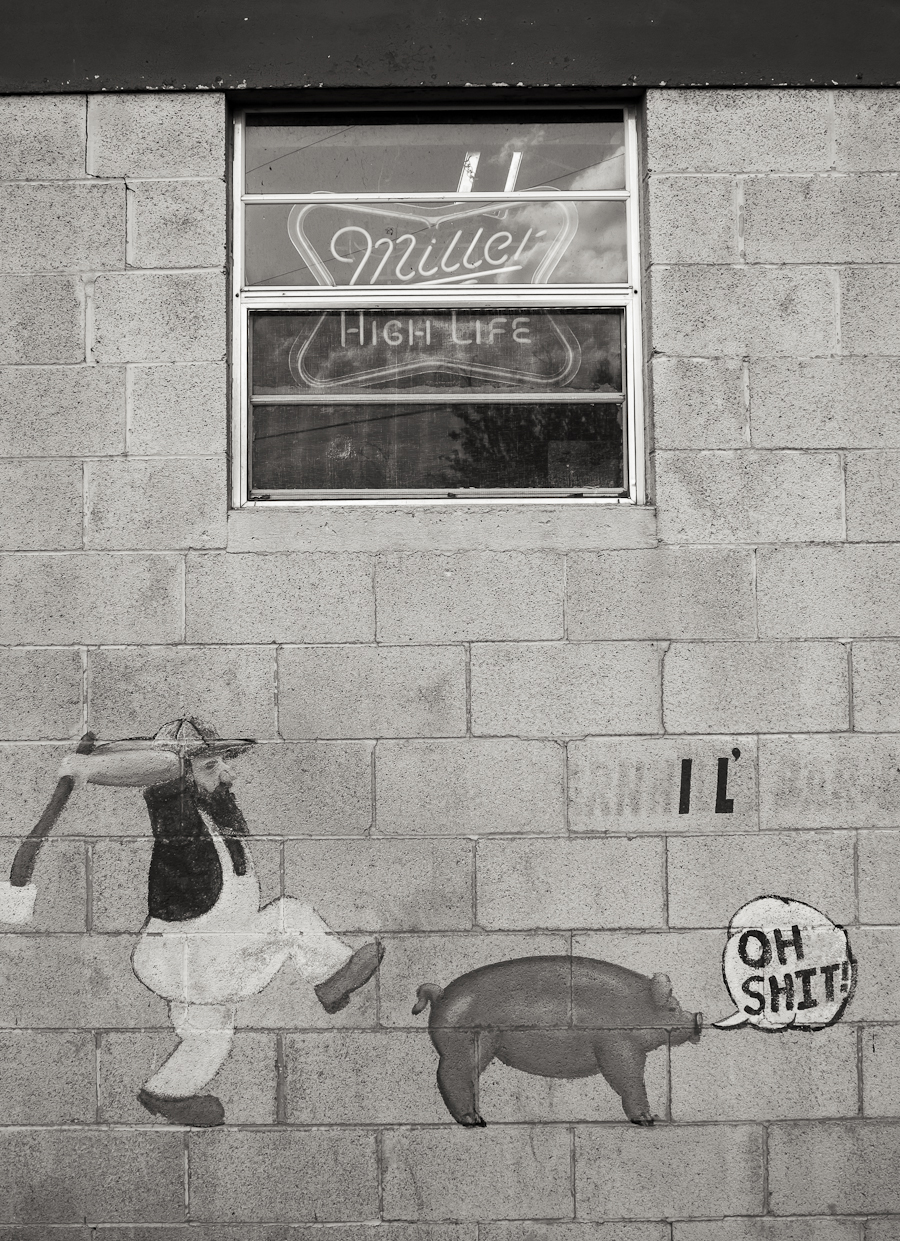 So after driving a while we found a joint (actually a dive) that advertised barbecue. Here’s their sign. This struck me as pretty promising and not bad for an April Fools day (of course the joke is on the pig).