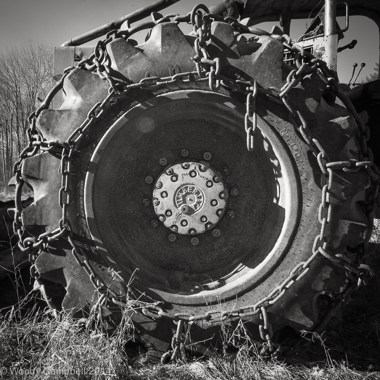 WARREN CONNECTICUT – I took a walk today in a neighbor’s woods where he stores disused farm equipment. Shot with my Sony A7rii and my Leica f.95 Noctilux lens (used wide open in this image), which results in characteristic edgy bokeh. Converted to black and white with my own formula, an attempt to match film response. The Nocti is actually easier to focus on the Sony than it is on a Leica body.
