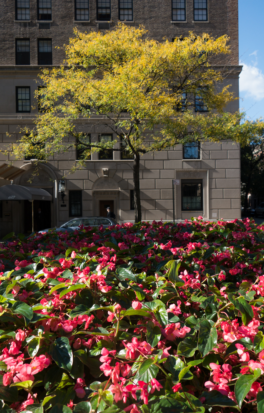 NEW YORK NEW YORK – Our lovely warm Autumn has permitted the begonias on the Park Avenue islands to grow longer and larger than I’ve ever seen them before – they are actually chest high. Taken with my Sony RX100 II, which I’m still carrying around after last night. Kind of a mundane image but keeps the photo a day thing alive.