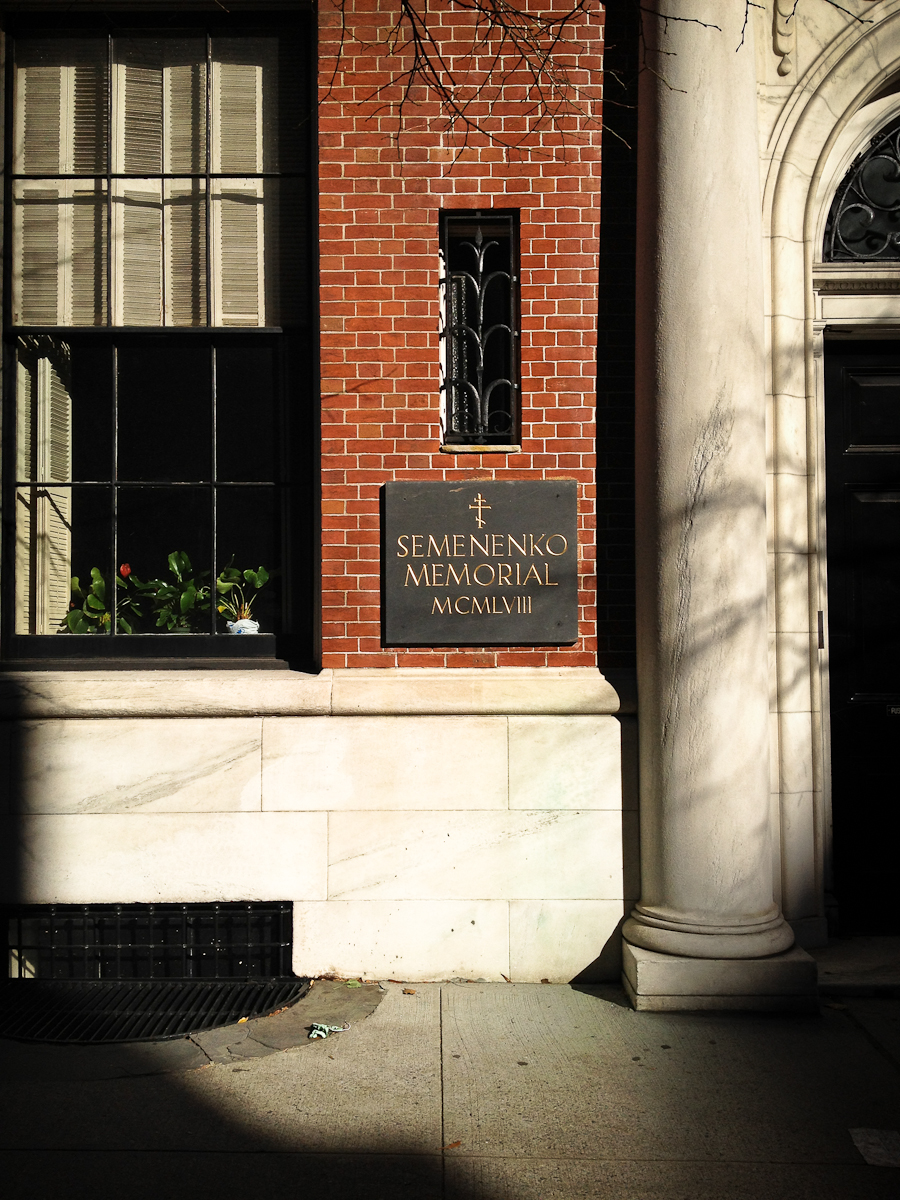 MEW YORK NEW YORK – Well here I am outside the headquarters of the Russian Orthodox Church Outside of Russia. I’ve written a couple of other posts on this subject: August 24, 2011 and November 24, 2010. I’m standing here because this is the only place within blocks where any sunlight is hitting the street. I loaded a bunch of camera apps on my iPhone and went looking for a scene with a long dynamic range and some bricks to test the apps. Here’s the one taken with an app called Pro HDR, which takes two images at different exposures and combines them in a “high dynamic range” images. The HDR feature is only so-so. Without a tripod the camera moves between shots. The app compensates for movement but the image appears less sharp than a non HDR image. It does give you the two exposures, though so you have a choice of which to use – here I used the under-exposed shot.
